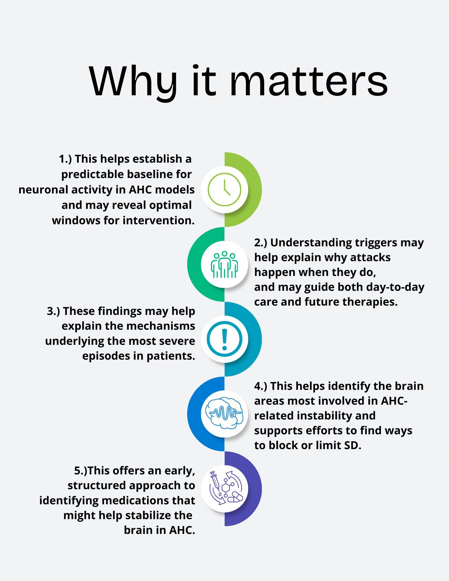 This research will examine what triggers these events, how they spread through the brain, and will include early testing of medications aimed at stabilizing abnormal brain activity. This collaboration marks a decisive step toward targeted treatments, safer care, and better outcomes for individuals and families living with AHC.